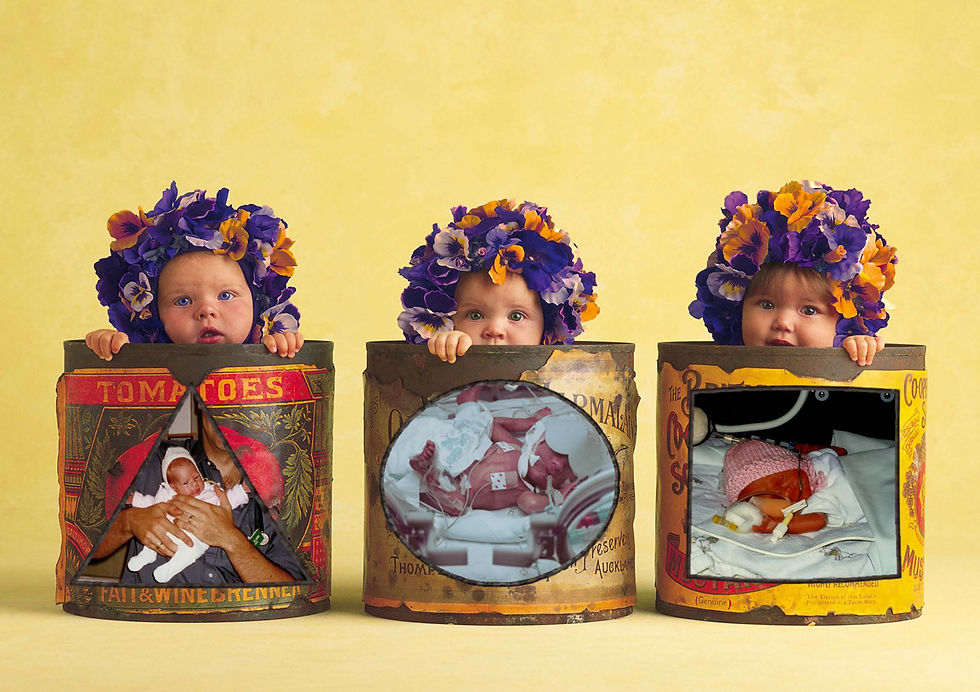 In this digital photomontage series, Ugly Cherub, I have visually explored the juxtaposition between the popular rhetoric of young babies as smiling cherubs and my personal experience; I was born 3 months prematurely. The effects of my birth were not limited to my own experience, but also the strain on my parents. I am constantly reminded with what I went through as a child as I am partially deaf in one ear. It is an everyday struggle to fully immerse myself in conversation which a ‘normal’ personal would find effortless. I have used digital collage to appropriate popular Anne Geddes images with images of myself when I was first born and the locations I was in.